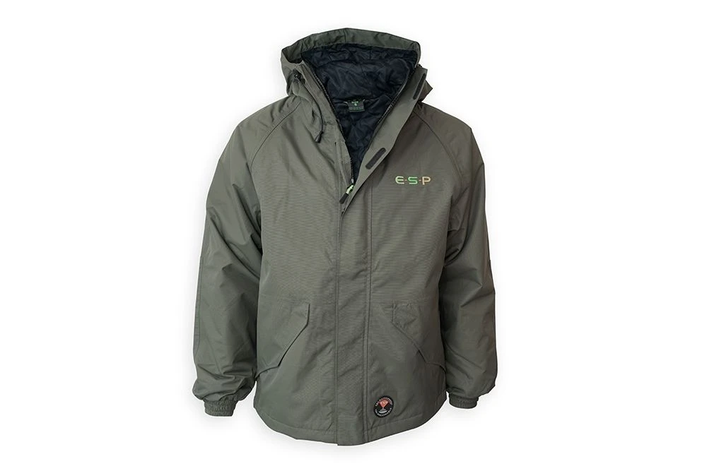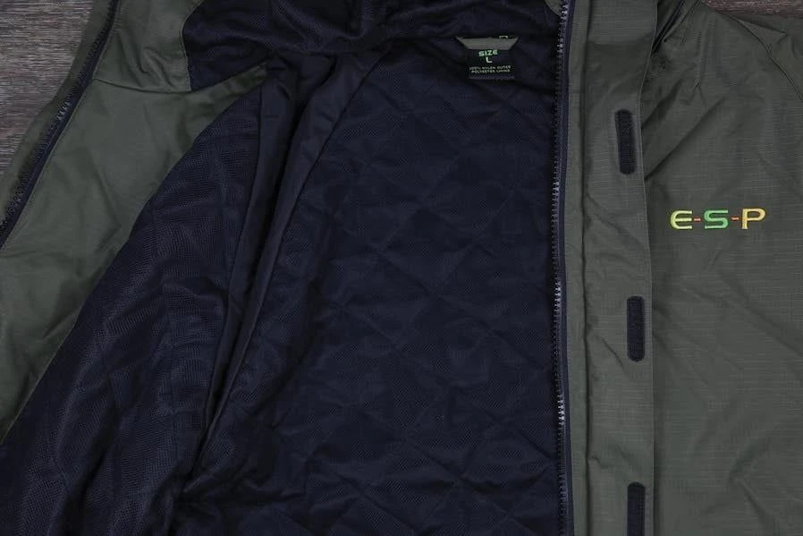 De ESP 25K Quilted Waterproof Jacket is een stijlvolle, gewatteerde winterjas. Deze jas is gemaakt van waterdichte en zeer goed ademende Nylon ripstop Shell met een waterdichtheid van 25000mm./m2 en een ademend vermogen van 10.000gr./m2/d en is hiermee van een vele malen betere kwaliteit dan andere producten die momenteel verkrijgbaar zijn. Deze ESP jas is ontworpen voor de moderne visser en voorzien van een hoogwaardige gewatteerde voering. Daarnaast is de jas voorzien van een hoge kraag, YKK ritssluiting met over de gehele lengte een regenbeschermer. Verder is de jas voorzien van een vaste verstelbare capuchon, de mouweinden zijn verstelbaar doormiddel van klittenband strap en voorzien van Neopreen manchetten. De jas is voorzien van twee afsluitbare steekzakken en twee afsluitbare binnen zakken en is aan de onderzijde verstelbaar.