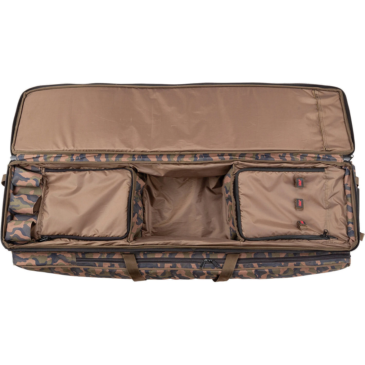 De Rova camo rod carryall is een volledig gewatteerd systeem. Hierin kun je 3 maal rova hengels met molen in kwijt. Deze kun je makkelijk vast zetten zodat ze niet beschadigen. De carryall heeft 5 compartimenten die voor voldoende opberg mogelijkheid bieden. Het grootste externe vak biedt ruimte voor bijvoorbeeld je landingsnet of recovery sling. De carryall wordt geleverd met een gevoerde schouderriem zodat je hem makkelijk kunt dragen.