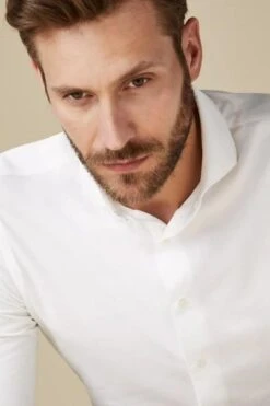 Kom stijlvol voor de dag met dit lichtblauw overhemd van Profuomo. Met de cutaway kraag en Slim-Fit pasvorm geef je je outfit een professionele uitstraling zonder daarvoor een stropdas te dragen. Het overhemd is gemaakt van strijkvrij katoen en is geweven in een platbinding. Hierdoor is het licht van gewicht en comfortabel om te dragen. De witte knopen geven dit babyblauw shirt een smart casual stijl.Â
